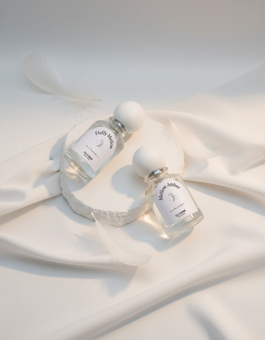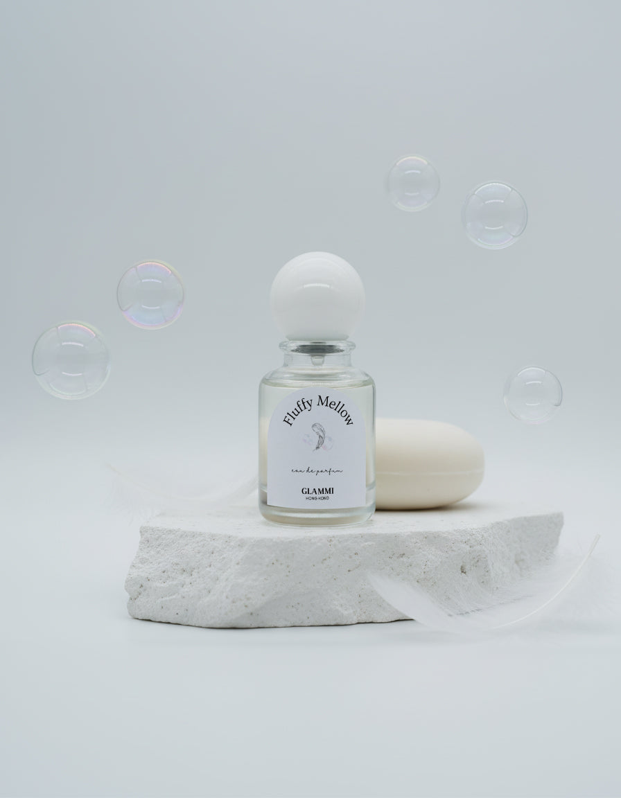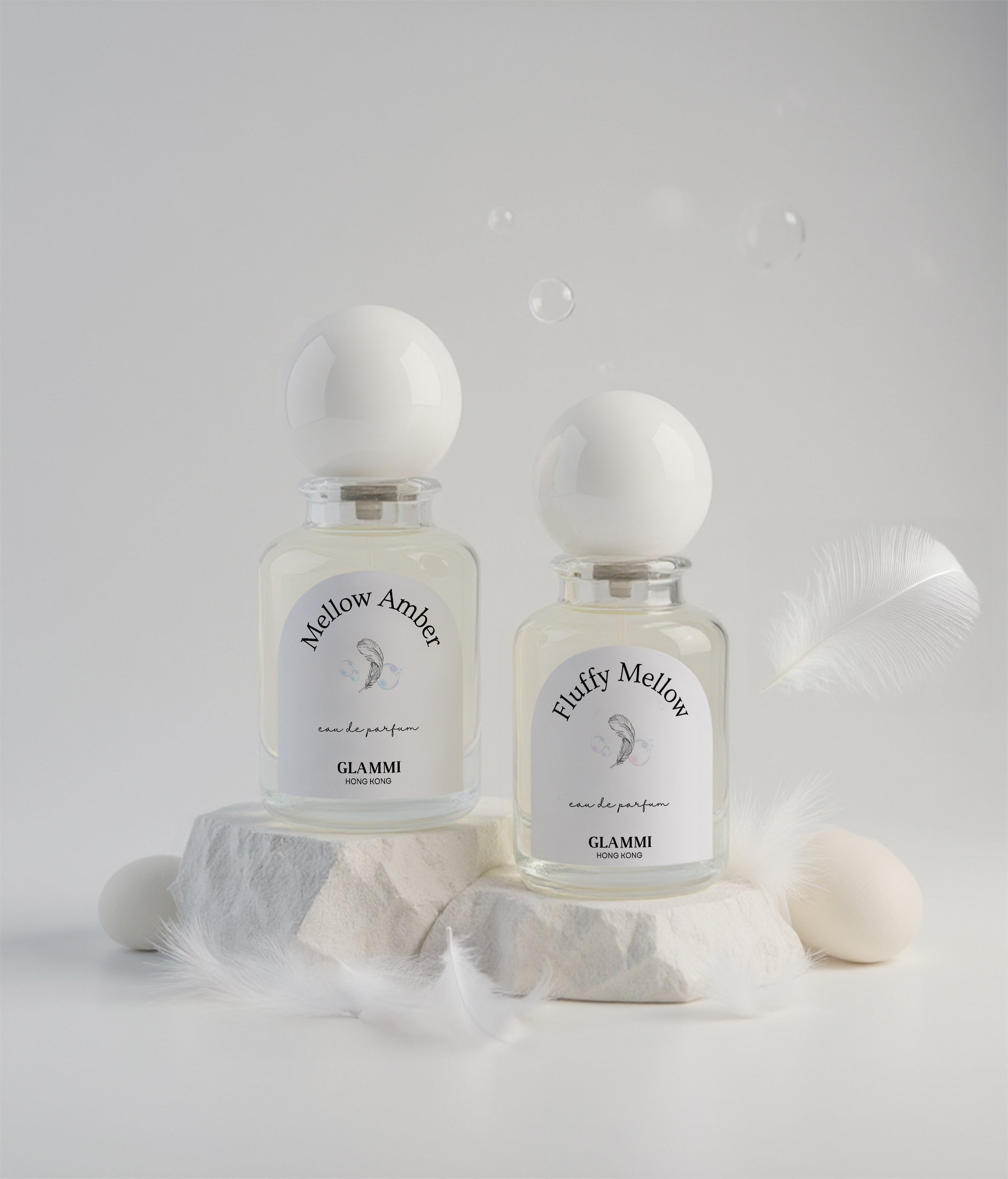 Fluffy Mellow is a soft and comforting fragrance that blends the transparent freshness of soapy musk with the subtle warmth of ambergris.