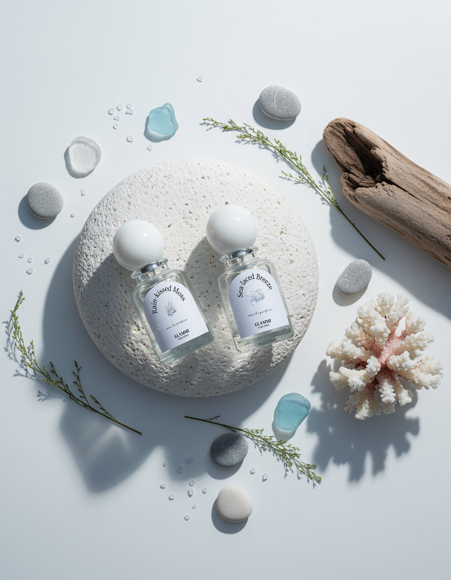 GLAMMI 提供優質的單瓶香水,容量有 10ml 與 30ml,適合日常自用與隨身攜帶。精選的雙瓶套裝(Duo Set)包含兩支相互呼應的 30ml 香水,特別為情侶、好友或重視關係的送禮場合而設——無論分享、疊香或送禮皆宜。若想探索香氣或挑選禮物,精緻禮盒套裝(Box Set)提供三支 10ml,可自選心儀香味自由組合,是生日、週年與各式慶祝的體面之選。